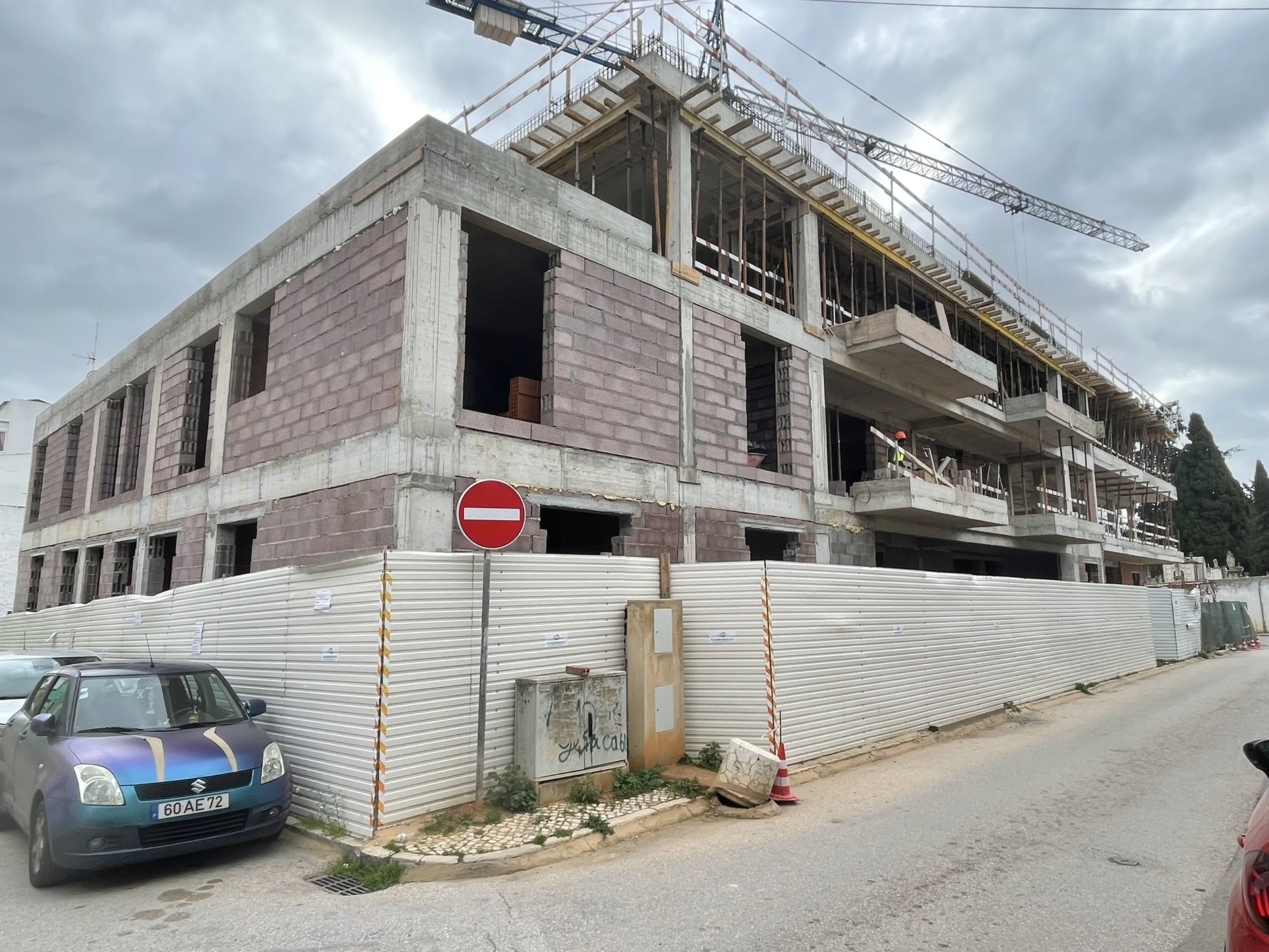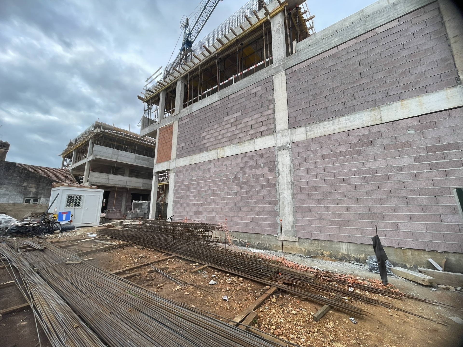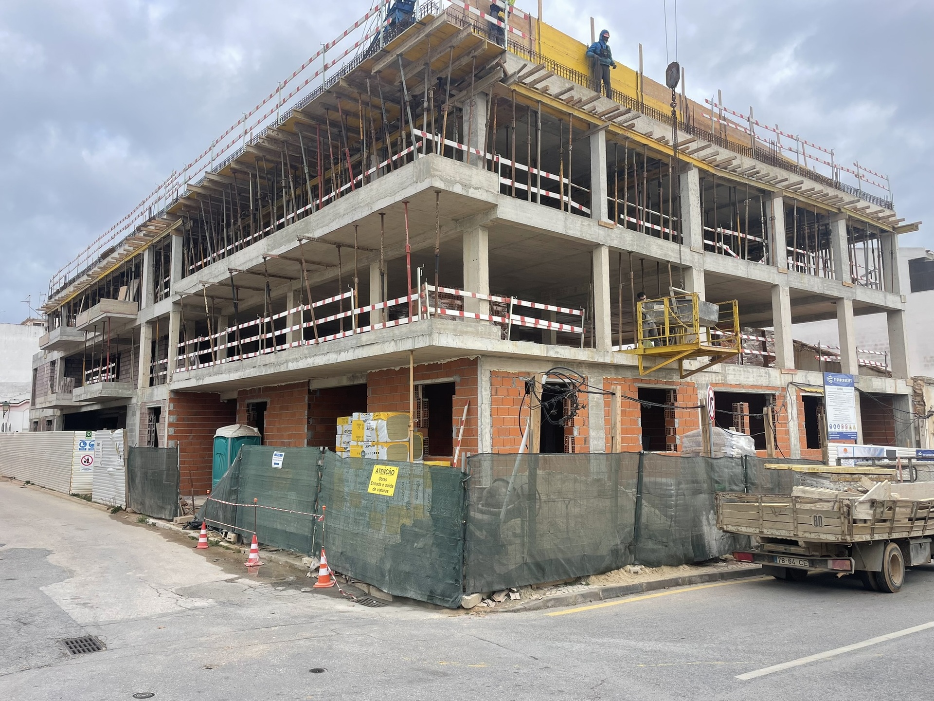 Obra Baltamar em desenvolvimento, com estrutura e alvenarias em fase de execução.