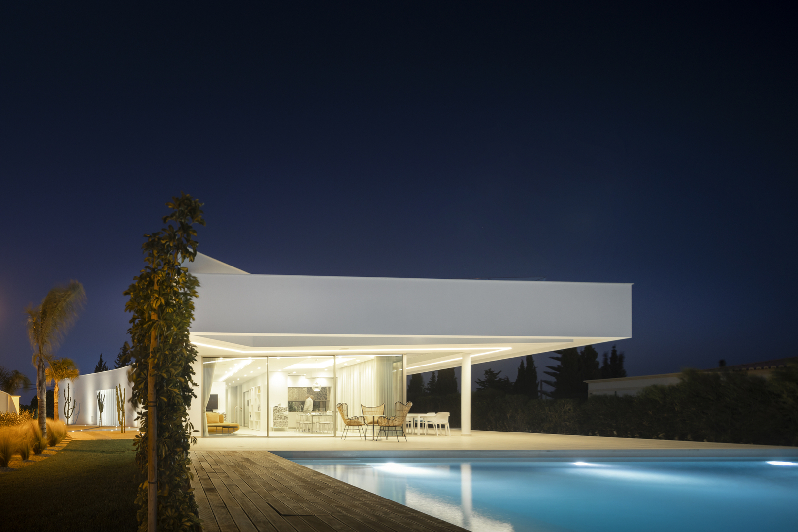 O projeto destaca-se pela precisão construtiva, acabamentos de elevada qualidade e pelo aproveitamento da luz natural como elemento central.